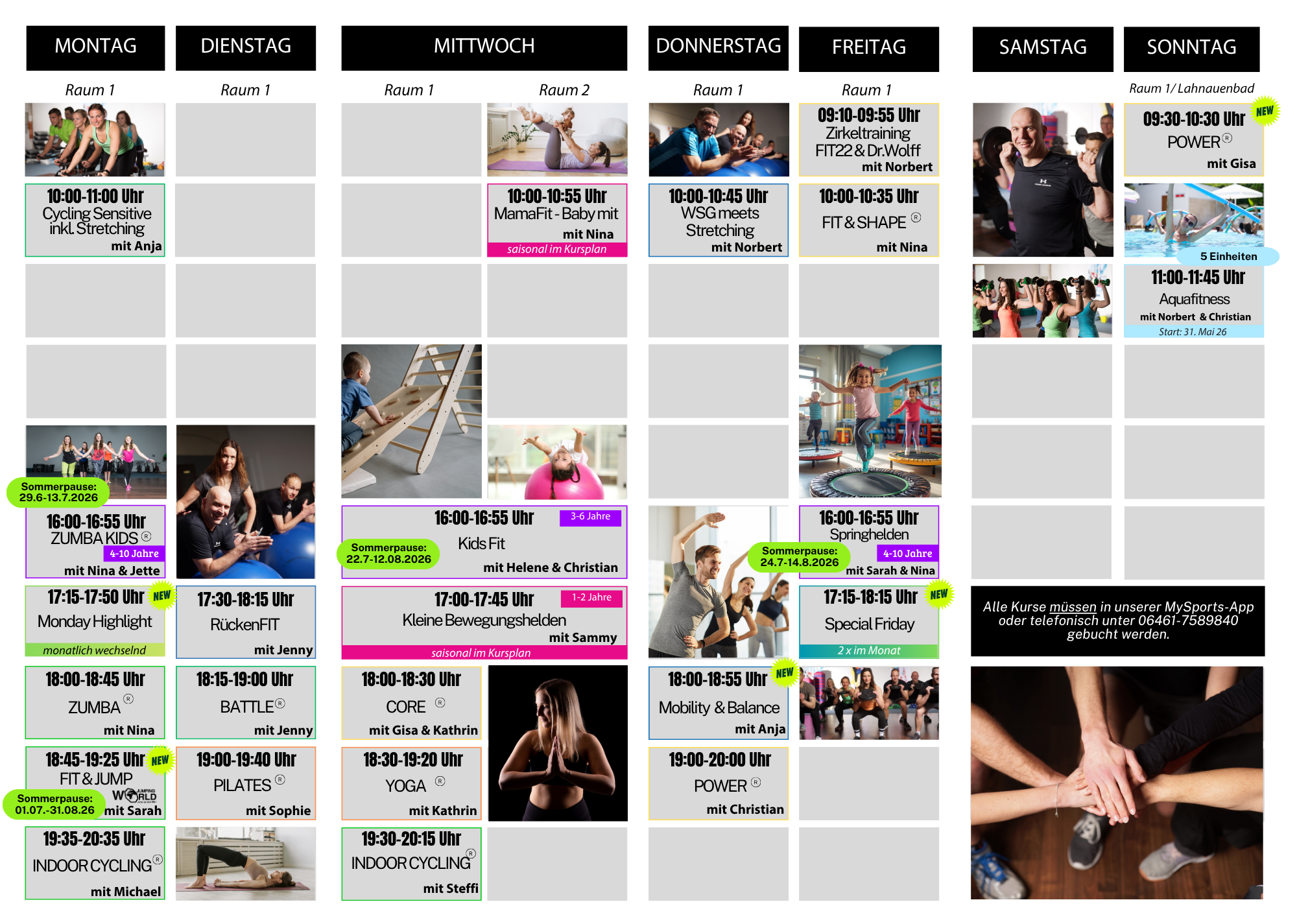 So bleibst du motiviert, forderst deinen Körper vielseitig und erreichst deine Ziele ohne Langeweile. Egal auf welchem Level du bist: Starte stark in die Woche und erlebe am Freitag dein ganz besonderes Training-Highlight!